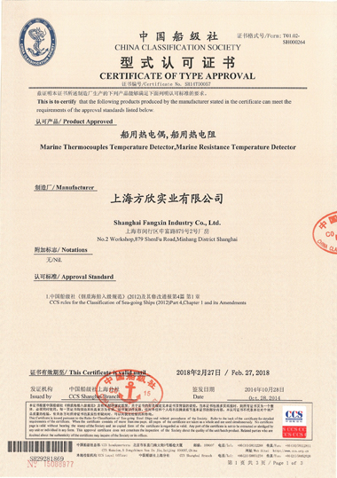 中國船級(jí)社型式認(rèn)可證書